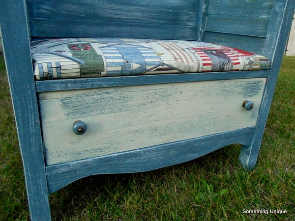 I completely removed the top, the top two drawers and structurally rebuilt the bottom. Then found a piece of wood that I could cut to the right size for a seat.